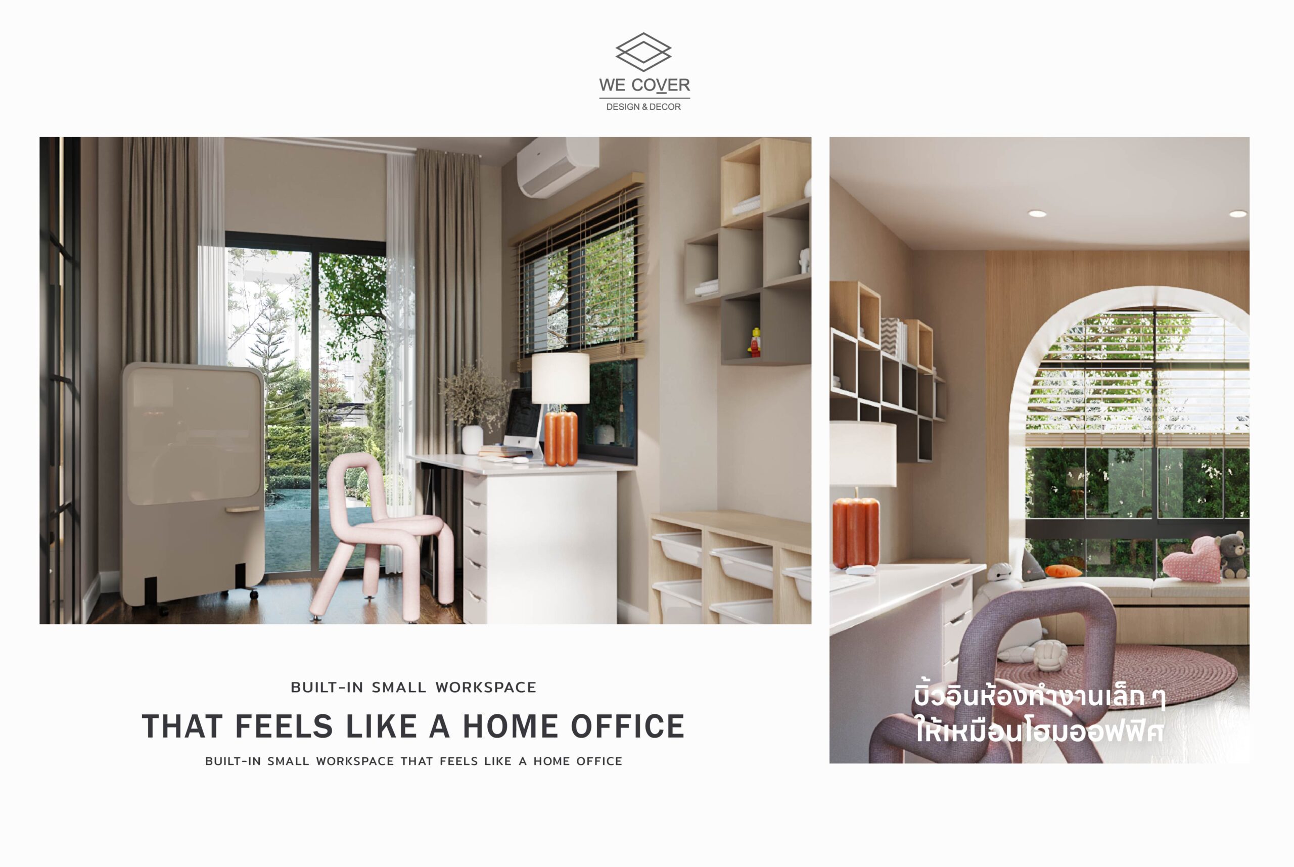 บางจุดตกแต่งเล็กน้อยแต่สร้างมูลค่าเพิ่มได้มาก เช่น มุมทำงานเล็ก ๆ สำหรับ Work from Home, ไฟซ่อนแบบ Warm Light เพิ่มความรู้สึกหรู, ผ้าม่าน 2 ชั้น / มู่ลี่ไม้ ที่ช่วยคุมแสงและเพิ่ม Texture ให้ห้อง
